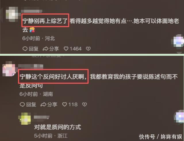 难怪网友辣评道:“宁静别再上综艺了,看得越多越觉得她有点....,本可以体面的老去。”